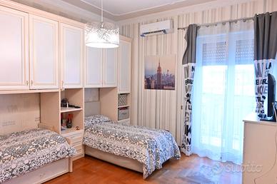 Ampio salone, cucina e cucinotto, 2 camere da letto, 2 bagni di cui 1 in camera, ripostiglio, lavanderia ampie balconate e box auto.