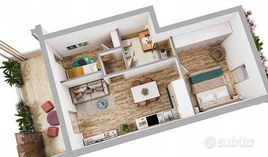 - Proponiamo in vendita una tipologia trilocale con ingresso indipendente, al piano terra composto da corte privata di 14 mq, zona giorno con cucina a vista, camera matrimoniale, studio, disimpegno e bagno. 260.000