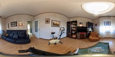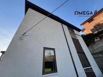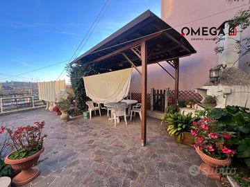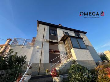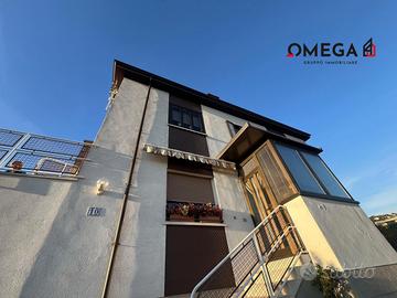 Casa bifamigliare in buone condizioni generali, ubicata in zona tranquilla e panoramica. Appartamento sito al 1° piano con esposizione su 4 lati e vista aperta/mare. Corridoio d'ingresso, soggiorno, cucina. Due camere matrimoniali, cameretta e bagno completo finestrato con doccia. Giardino di proprietà di c.a. 106 mq e ulteriore spazio esterno comune. Box auto e cantina. C.E.: In fase di definizione