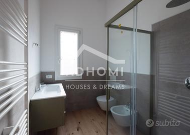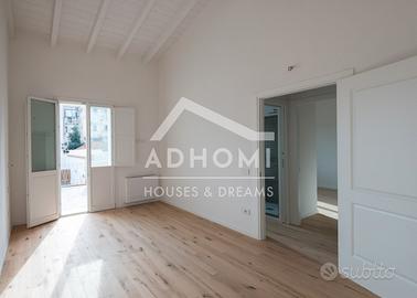 Si accede all'abitazione attraverso il cortile privato con posto auto e un bellissimo loggiato colonnato.