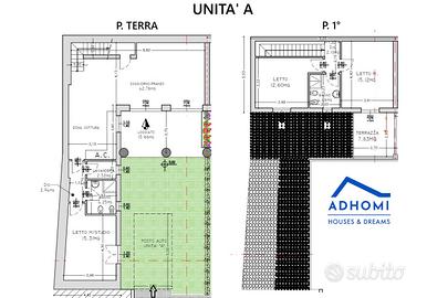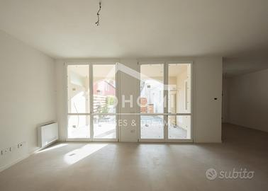 Ingresso interno al piano terra su grande soggiorno con zona cottura di quasi 50 mq, una camera matrimoniale, bagno e lavanderia.