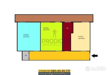 L'immobile è composto da cucina abitabile, bagno, ripostiglio, due camere da letto e un lungo balcone che dona luminosità .