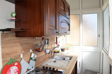 Composto da : ingresso , cucina abitabile con attigua veranda , 2 camere da letto , ampio bagno con doccia , comodo ripostiglio , salone doppio , ripostiglio e un balcone .