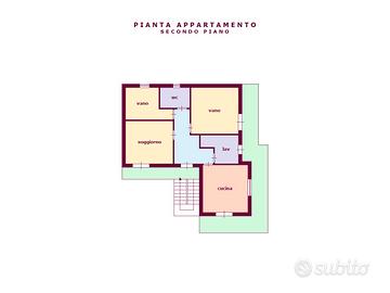 Facente parte di un piccolo e tranquillo edificio composto solamente da altre due abitazioni ed avente accesso da scala esterna comune, ha una superficie complessiva coperta di circa 80 m² ed è composto da ingresso, comodo salone, cucina abitabile, stanza da letto, stanzetta, servizio igienico, lavanderia con box doccia ed ampio balcone che circonda l'appartamento quasi interamente con affaccio su via pubblica.
