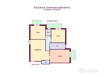 Con lavori di modesta entità è possibile ricavare un'ulteriore stanza da letto a discapito dell'attuale cucina, realizzando un'ampia cucina/soggiorno di ingresso.