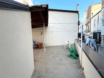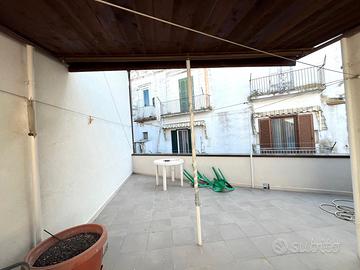 Proponiamo in vendita un compendio cielo-terra provvisto di un locale deposito al piano terra, un appartamento al piano rialzato ed una terrazza al primo piano.