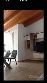 un luminoso open space con cucina e salotto conviviale, grande vetrata che da un tocco di luminosità in più. Bagno con comoda doccia.
