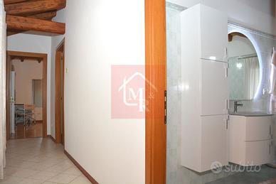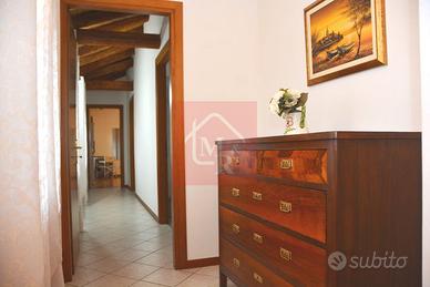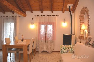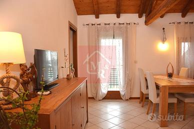 Siamo nella tranquilla Zellina, poco distanti da San Giorgio di Nogaro, dove ti presentiamo questo confortevole APPARTAMENTO BICAMERE (di mq 112) posto al secondo piano senza ascensore di un fabbricato con solo 7 unità abitative, eretto su lotto completamente recintato e dotato di area scoperta comune. Questa proprietà offre ampi spazi, buone finiture, tanta luce e risulta così composta: soggiorno con terrazzino, cucinino, disimpegno, bagno e due generose camere di cui una con bagno ad uso esclusivo. Gli infissi, in buono stato di manutenzione, sono in legno con doppio vetro e zanzariere. L'appartamento è termoautonomo e dispone di due condizionatori per il raffrescamento estivo. L'intero complesso è stato completamente ristrutturato nel 1998. Le spese condominiali sono minime: solo 35 euro al mese! A completare la proprietà, troviamo un comodo garage ed un posto auto scoperto.