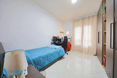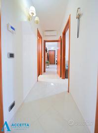 CONFORTEVOLE APPARTAMENTO CON TERRAZZA IN ZONA SERVITISSIMA DI TALSANO (ADIACENZE VIALE EUROPA). In zona servitissima di Talsano, nelle immediate adiacenze di Viale Europa, presso Via Giovanni Borraccino, proponiamo in vendita appartamento rifinito posto al primo piano di uno stabile con ascensore, all'interno di un contesto condominiale tranquillo e ben curato. L'immobile offre ambienti comodi e ben distribuiti ed è composto da: ingresso su accogliente soggiorno, cucina abitabile, tre comode camere da letto, due bagni, ripostiglio, un balcone ed un pratico e vivibile terrazzino ne completa la proprietà. La posizione è strategica, con tutti i principali servizi a portata di mano: scuole, fermate autobus, supermercati, centri sportivi, ufficio postale e attività commerciali di vario genere. Al suo interno è dotato di: impianto di riscaldamento autonomo, Infissi con doppio vetro, zanzariere, videocitofono, porta blindata e cancellate di sicurezza. L'immobile si presenta in ottime condizioni, ideale per famiglie o per chi cerca una soluzione funzionale in zona ben collegata, l'immobile è attualmente locato.