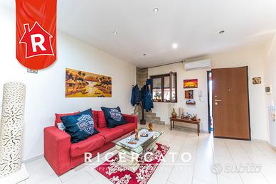 La soluzione proposta è parte di un contesto condominiale costruito nel 2013, si tratta di un appartamento posto in contesto bifamiliare, le abitazioni si sviluppano al piano terra e primo piano. L'appartamento presenta una superficie coperta di 70mq ed un giardino di proprietà esclusiva di circa 30mq dov'è possibile anche posteggiare un auto. L'immobile, al suo interno, è composto da un'ampia zona living, un cucinotto disimpegnato ed un disimpegno che consente l'accesso alla camera da letto matrimoniale e un bagno finestrato di generosa metratura. L'immobile è dotato di buone finitura, infissi doppio vetro camera/legno, zanzariere, tapparelle elettriche, condizionatore caldo/freddo e portoncino blindato. La soluzione si presta bene ad una giovane coppia, fornendo anche uno spazio esterno dove trascorrere momenti di convivialità.