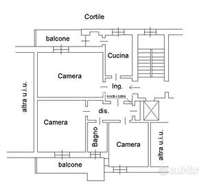 L'immobile è composto da: ingresso con disimpegno, cucina con uscita sul primo balcone, ampio salone, due camere da letto, bagno, ripostiglio e secondo balcone.