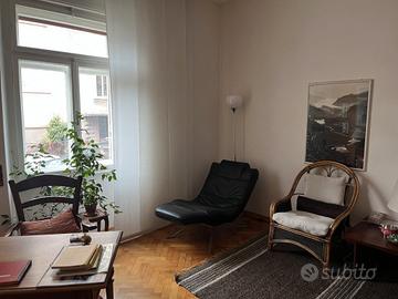 vicinanze, in palazzetto d'epoca, vendiamo ampio appartamento di circa 160 mq. con giardino privato. Ampio ingresso, soggiorno, cucina con tinello, 3 stanze doppie, due bagni, ripostiglio. Cantine e soffitta. Piccolo garage. Termoautonomo