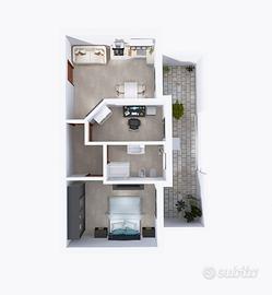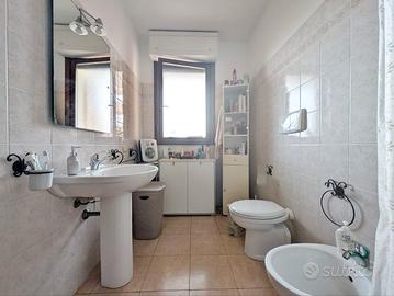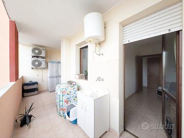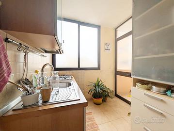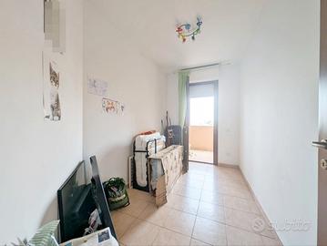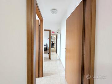 Un comodo disimpegno conduce alla zona notte composta da un bagno finestrato, una camera matrimoniale e uno studio, entrambi con accesso diretto al balcone con zona lavanderia, ideale per momenti di relax all'aria aperta.
