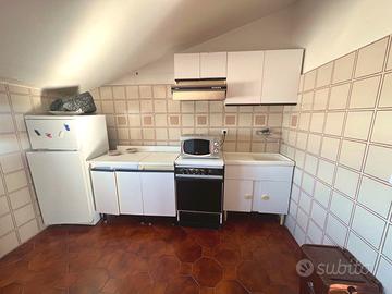 Tramite scala interna si accede al piano mansardato (altezza al colmo 2,70 m), dove troviamo un'ampia zona living, cucina e secondo bagno.