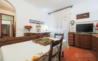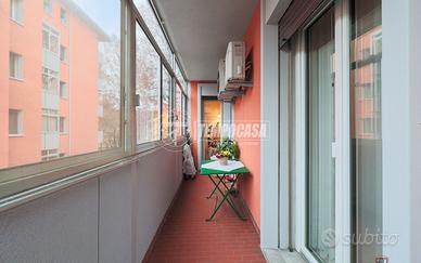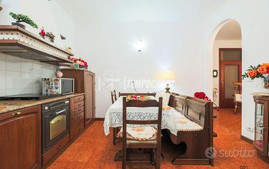 La cucina abitabile è spaziosa e funzionale, con accesso a un balcone loggiato, perfetto per pranzi e cene all'aperto.