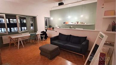 In palazzo degli anni '60, al sesto ed ultimo piano con doppio ascensore e portineria tutto il giorno, proponiamo trilocale arredato di circa 85 mq (porzione di un immobile più grande) .