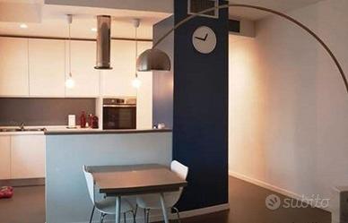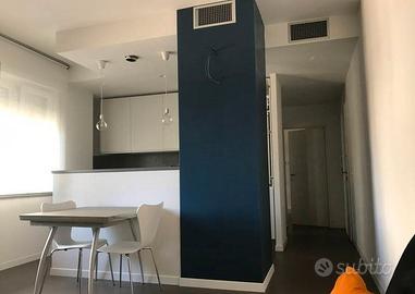 58 mq ben arredati con climatizzatore. Dotato di ampio soggiorno con tavolo da pranzo, divano e isola con piano cottura ad induzione e cucina con frigo, congelatore e forno.