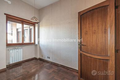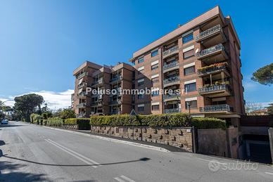 Prestigioso appartamento quadrilocale situato in Via Matteo Bartoli, nel cuore di una delle zone più ambite e silenziose del quartiere Giuliana Dalmata. L'immobile è inserito in un elegante condominio in cortina, un contesto signorile estremamente curato e rifinito, rinnovato nel 2021. Posto al quarto piano di un edificio di cinque, servito da ascensore, l'appartamento vanta una metratura generosa di 130 mq interni oltre ad ampi spazi esterni e un'esposizione favorevole che regala una suggestiva vista aperta sul parco. L'ingresso principale introduce direttamente ad un ampio e luminoso salone doppio, la cui spaziosità è esaltata dalle due grandi finestre che si affacciano direttamente sul verde e garantiscono l'accesso al balcone principale a pianta quadrata. Adiacente al salone, troviamo la cucina abitabile, che dispone di un secondo balcone di servizio dedicato. Dal corridoio, dotato di armadiatura a muro, si raggiunge la zona notte, composta da due matrimoniali e una cameretta servite da due bagni, entrambi dotati di finestra. La pianta originaria, un manifesto di razionalità distributiva tipica delle architetture di pregio degli anni '70, si offre come una tela bianca per un progetto di restauro conservativo ad alto potenziale. Il valore distintivo di questa proprietà risiede nella possibilità di fondere passato e futuro. Un progetto d'interior design ambizioso potrebbe immaginare una moderna ridistribuzione trasformando la regolarità degli spazi in un'espressione di lusso funzionale. Completano la proprietà una comoda cantina e un ampio box auto doppio. La posizione è strategicamente ideale, trovandosi esattamente a metà strada tra le moderne comodità del Centro Commerciale Maximo e la stazione Metro Laurentina, entrambi raggiungibili in pochi minuti di automobile. Il prezzo richiesto è di € 589.000 classe G, Peluso Immobiliare, tel info@immobiliarepeluso.it