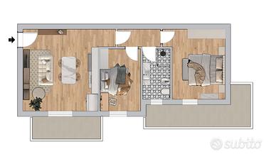 L'appartamento è progettato per essere efficiente e smart, le dotazioni incluse sono impianto fotovoltaico, condizionatori, scaldaacqua a pompa di calore, tapparelle motorizzate.