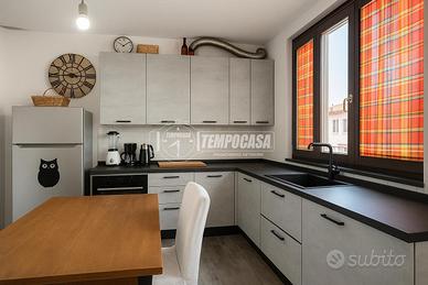 Al piano terra si apre un luminoso soggiorno con cucina a vista, ampio e ben distribuito, ideale per accogliere e vivere ogni giorno con stile. Sempre su questo livello è presente un comodo ripostiglio.
