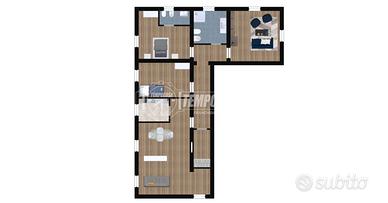 L'appartamento, di 135 mq, accoglie con un ingresso che conduce a un ampio soggiorno, ideale per momenti di relax e convivialità. La cucina abitabile è funzionale e ben organizzata. La zona notte, ben distribuita, comprende una cameretta, due spaziose camere matrimoniali, di cui una con bagno privato finestrato, oltre a un secondo bagno finestrato e a un comodo ripostiglio.
