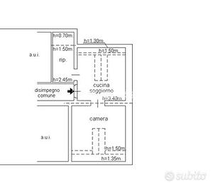 L'appartamento è composto da: ingresso su soggiorno con cucina a vista, bagno finestrato e camera da letto matrimoniale.