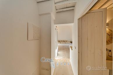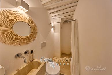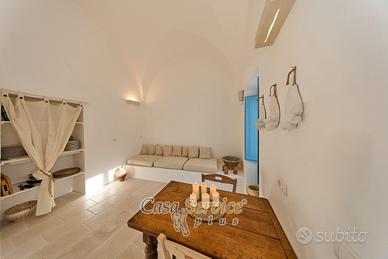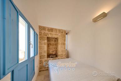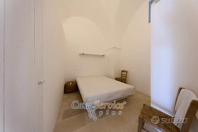 Le camere da letto, dominate da imponenti volte a stella e pietra leccese, conservano il fascino antico, esaltando il carattere salentino della maison.