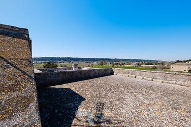 -frontalmente vi è l'accesso al magnifico terrazzo a livello, da cui respirare ed inebriarsi dell'aria salubre del circondario e allietarsi dei vivaci colori del paesaggio bucolico. Su tale terrazzo insiste un ulteriore vano sempre voltato a stella.