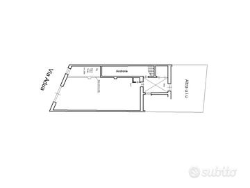 Il secondo locale, catastalmente abitativo A/4 (60mq) ha accesso sia dal portone in Via Adua n.13 che dal locale al civico 15, attraverso una porta sul lato retrano.
