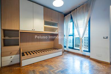 L'immobile vanta finiture di pregio, tra cui pavimenti in marmo chiaro con delicate venature beige nel salone e caldo parquet nelle camere, mentre i rivestimenti di bagno e cucina sono in ceramica di prima scelta. Gli infissi in legno montano vetrate scorrevoli e sono protetti da grate con decori geometrici, mentre la sicurezza è garantita da un portone blindato con cilindro europeo. La casa è dotata di riscaldamento autonomo e impianto di climatizzazione, con una gestione sapiente degli spazi arricchita da un sistema di illuminazione a faretti, scaffalature su misura e nicchie d'arredo che permettono di sfruttare ogni spazio della casa.