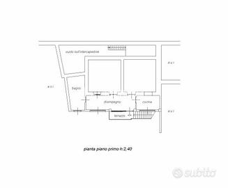 L'appartamento si trova al primo piano. Entrando, verrai accolto da un disimpegno che conduce ai vari ambienti della casa: il soggiorno, con cucina a vista, offre un ambiente intimo e confortevole per rilassarsi o ricevere ospiti. Il piano comprende anche un bagno con vasca, e una camera da letto matrimoniale ampia e luminosa, perfetta per riposare in totale serenità.