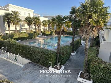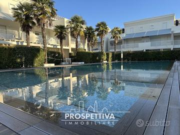 Jesolo lido zona piazza Nember all'interno di un villaggio finemente curato non lontano dal mare Proponiamo in vendita un magnifico appartamento distribuito in due piani situato all'interno di un elegante residence dotato di piscina. l'appartamento è caratterizzato da ingresso autonomo che da accesso al primo piano dove si trova una spaziosa zona giorno luminosa grazie ad un ampio finestrone che conduce direttamente a una comoda e profonda terrazza perfetta per pranzi o cene all'aperto o momenti di relax al sole, una cucina funzionale con doppia porta per una chiusura in modo da renderla separata, un disimpegno ben concepito ospita lavanderia e bagno, rendendo la vita quotidiana ancora più funzionale. Al secondo piano sono presenti due ampie camere matrimoniali che offrono uno spazio accogliente e rilassante; completiamo il piano con un ulteriore bagno moderno ed efficiente. Un grande valore aggiunto è rappresentato dal garage doppio privato nel seminterrato, più spazio extra per biciclette e attrezzature varie. le finiture sono di ottimo livello, non perdere questa opportunità! Riferimento: filo C.E.: A1