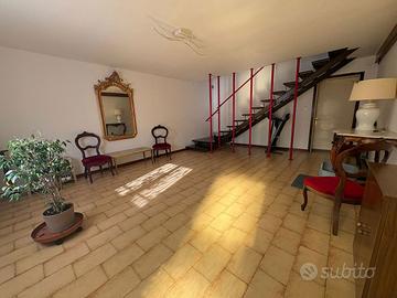 Salendo al primo piano, la zona living si apre con un soggiorno luminoso e una cucina abitabile che si affaccia su un terrazzo privato. La zona notte comprende una camera matrimoniale, una seconda camera perfetta come studio o cameretta, e un secondo bagno. Completa la proprietà un'autorimessa aperta.