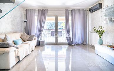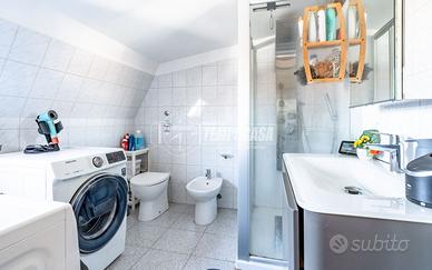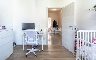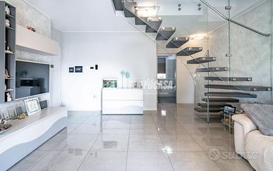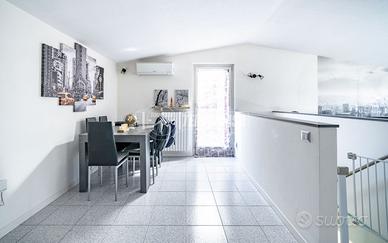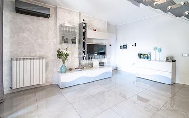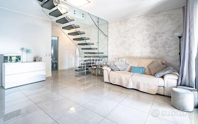 Nel cuore del paese, in una posizione strategica con stazione, scuole e posta comodamente raggiungibili a piedi, proponiamo in vendita uno splendido duplex inserito in una palazzina di sole 6 famiglie, posto al secondo piano e caratterizzato da ampi spazi e finiture moderne. Varcando la porta blindata si viene accolti da un ampio soggiorno luminoso, ambiente centrale della casa, impreziosito dall'accesso diretto a un terrazzo vivibile, dotato di tenda da sole, zanzariere e vetro-tenda, perfetto per essere sfruttato in ogni stagione. Il soggiorno comunica armoniosamente con la cucina abitabile finestrata, anch'essa con sfogo esterno su un comodo balcone, dotato di tenda da sole e zanzariera, rendendo la zona giorno funzionale e ben organizzata. Il disimpegno conduce alla zona notte, dove troviamo una pratica e funzionale cabina armadio e due camere da letto: una cameretta ampia e luminosa e una camera matrimoniale, entrambe finestrate e ben distribuite. Il piano è completato da un bagno finestrato, dotato di vasca e sanitari appoggiati. Dal soggiorno, una raffinata scala di design in vetro accompagna al piano superiore, dove si apre un secondo ampio soggiorno impreziosito dal camino, uno spazio versatile ideale come zona relax, studio o area ospiti, con accesso diretto a un ulteriore terrazzo; su questo livello troviamo anche un secondo bagno finestrato, completo di doccia in cristallo, sanitari appoggiati e attacco lavatrice. L'immobile è stato completamente ristrutturato nel 2020 e si distingue per le numerose dotazioni: zanzariere in tutta la casa, impianto di climatizzazione in tutti e due i piani, impianto di antifurto perimetrale e volumetrico, videocitofono su entrambi i piani, riscaldamento a zone e una seconda porta blindata al piano superiore. È inoltre presente la predisposizione per una cucina sempre al piano supe