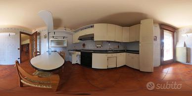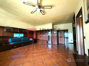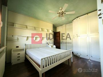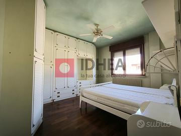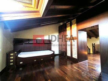 L'appartamento, di generosa metratura, è così composto: al primo livello, ingresso su soggiorno con cucina separata di complessivi ca 45mq, un ampio corridoio che può contenere un'armadiatura conduce alla zona notte formata da una camera matrimoniale di 15 mq , due camere singole ciascuna di ca 9 mq, due bagni; una scala in legno porta al secondo livello dove troviamo una mansarda di ca 42 mq attualmente arredata in modo da ricavare due ambienti separati. Ampio garage di proprietà e posti auto scoperti disponibili all'interno del perimetro condominiale.