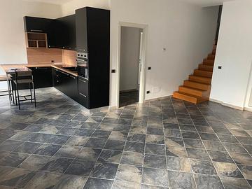 Piano inferiore: ingresso su ampio soggiorno, cucina abitabile con accesso diretto al balcone, camera, bagno e disimpegno funzionale;
