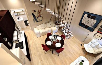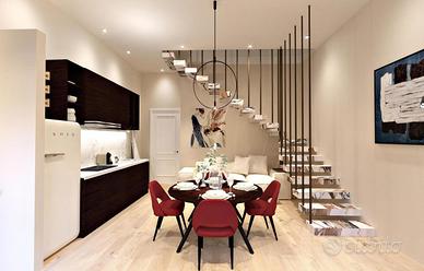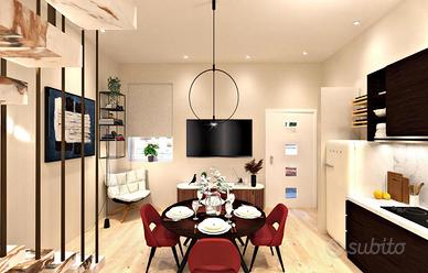 L'abitazione ha ingresso al piano terreno dove si sviluppa la zona giorno con cucina a vista e bagno, tramite graziosa scala interna di design, si ha accesso al piano superiore dove troviamo la zona notte composta da due camere e servita da balconcino. Predisposizione per la creazione di un secondo bagno nella zona notte.