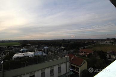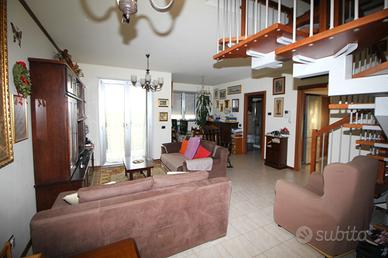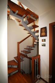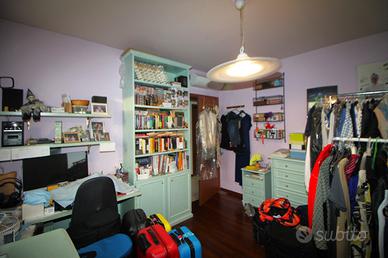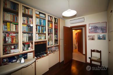 L'appartamento è disposto su due livelli ed ha ingresso al quarto e penultimo piano con ingresso nel soggiorno con accesso al balcone, cucina separata ed abitabile caratterizzata da generosa metratura ed ampia luminosità grazie ala presenza di due porte finestre che conducono ad da terrazzino coperto sfruttabile per pranzi e cene all'aperto; disimpegno dà accesso allo studio ed al bagno finestrato con doccia che serve il piano.