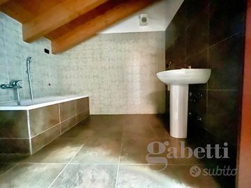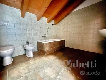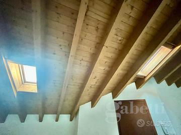 La scala a chiocciola di collegamento interna, conduce alla mansarda finita con travi a vista, di ampia metratura e dalle altezze fruibili che consentono il posizionamento di qualsiasi tipo di arredo, utilizzabile quindi come camera matrimoniale, in cui può trovare spazio anche un' area studio. Al piano secondo servizio con vasca, all'occorrenza riadattabile a cabina armadio.