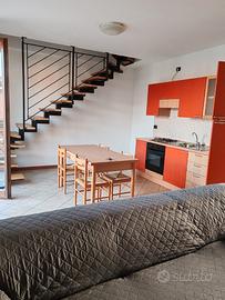 In palazzina residenziale , al secondo piano con ascensore, soggiorno con cottura, bagno, balcone + mansarda con camera letto e bagno padronale.