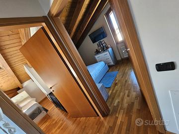 RIF. 3349 A Villa Guardia, a soli 10 minuti dal centro di Como, proponiamo in vendita un elegante duplex mansardato di recente costruzione anno 2006, inserito in un contesto residenziale riservato e molto curato, con aiuole ben tenute e poche unità abitative. Il fabbricato costituito da sole 3 unità immobiliari, garantisce un'ottima privacy, grazie anche alla netta separazione degli accessi rispetto al piano terra. L'immobile si sviluppa tra primo e secondo piano per una superficie di 93 mq complessivi ed è così composto: Al primo livello troviamo l'ingresso su una ampia e luminosa zona giorno con cucina a vista, valorizzata da una scala interna a vista che conduce al piano superiore. Da qui si accede a un gradevole terrazzino frontale, con affaccio aperto sul verde, ideale per godersi tranquillità e privacy. Sullo stesso piano sono presenti un disimpegno e un bagno completo con doccia. Al piano superiore, la zona notte colpisce per il fascino dei tetti mansardati, i lucernari a tetto e le altezze ben sfruttabili, che consentono l'utilizzo di arredi standard. Qui troviamo un disimpegno, un ampio bagno con vasca idromassaggio, una cameretta spaziosa e una camera matrimoniale di generose dimensioni. Parte dell'arredo su misura della cameretta è compreso nella vendita, mentre gli altri mobili non sono inclusi. Completa la proprietà un comodo garage di circa 26 mq, posto al piano autorimesse e raggiungibile tramite rampa separata, con accesso elettrificato e apertura con telecomando. Tra i plus dell'abitazione: recente costruzione, contesto di poche unità, terrazzo con affaccio nel verde, infissi a taglio termico, impianti a norma, caldaia autonoma, predisposizione lavatrice in bagno, ottima distribuzione degli spazi e un'atmosfera accogliente, moderna e molto curata. Importo: 235.000 euro, spese condominiali 60 euro circa Classe energetica in fase di rilascio N.B. L'immobile sarà occupato fino al 31 dicembre Per info DFC immobiliare