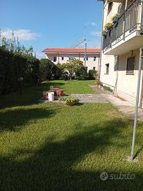 Attraverso il cancello sia pedonale che carrabile si ha accesso alla proprietà, con spazio esterno a verde grande e ben diviso rispetto all'altra porzione dell'immobile. Al piano terra locale di sgombero di circa 50 mq da usure come zona lavanderia, come garage o eventualmente con possibilità con alcuni lavori di essere trasformato in bilocale.