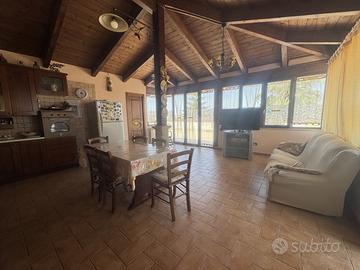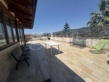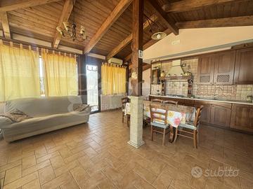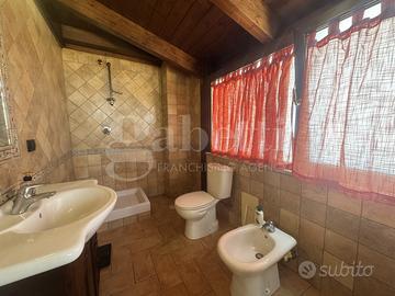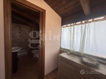 Attraverso una comoda scala interna si accede al piano superiore, dove troviamo una spaziosa cucina abitabile, un ulteriore bagno e un magnifico terrazzo a livello di circa 80 mq, perfetto per vivere momenti di relax, organizzare cene all'aperto o semplicemente godersi la privacy degli spazi esterni.