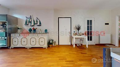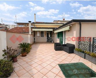 UV001PA- Appartamento Signorile di 170 mq con grande Terrazza e Trilocale indipendente in Viareggio, completamente ristrutturato. La posizione è tra le più ricercate della città: nel cuore pulsante di Viareggio, a pochi passi dalla zona pedonale del mercato e vicino a tutti i principali servizi e alla rinomata passeggiata, si trova questo elegante appartamento, che si vende semiarredato, caratterizzato da finiture di pregio, infissi nuovi e pavimento in parquet. L'immobile si distingue per una doppia soluzione abitativa, che lo rende molto versatile e interessante: oltre all'abitazione principale, dove è possibile avere 2 camere matrimoniali affacciate sul terrazzo, comprende anche un trilocale indipendente, perfetto per affitti turistici brevi o per chi desidera garantire autonomia a un familiare. L'appartamento principale si sviluppa come segue: Superata la soglia d'ingresso, si accede a un ampio Open Space che ospita una cucina moderna su misura - lasciata a disposizione dal proprietario -, un grande tavolo da pranzo che può accogliere fino a dieci persone e una zona living con divano e TV, ideale per momenti di relax e convivialità. Spaziosa e funzionale, ha accesso diretto alla terrazza. Un pratico ripostiglio è situato nelle immediate vicinanze dell'ingresso, offrendo ulteriore funzionalità all'ambiente. La zona notte, che si affaccia direttamente sull'Open Space, è composta al momento da una spaziosa camera matrimoniale che garantisce grande comfort, ma in origine le camere erano due e la seconda può facilmente essere ripristinata, anch'essa con affaccio sul terrazzo. Il bagno, completamente ristrutturato in stile moderno, è dotato di un elegante box doccia e finestra sulla terrazza. Completa la zona giorno un ampio disimpegno, versatile e facilmente adattabile a molteplici esigenze: può diventare uno studio, un guardaroba o essere utilizzato come spazio aggiuntivo per riporre oggetti o ospitare un amico, offrendo così u