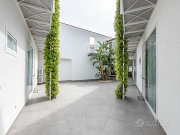 A completare la proprietà troviamo un immobile adibito a magazzino di 168mq circa, attualmente allo stato grezzo, con possibilità di cambio di destinazione d'uso, ideale per la realizzazione di ulteriori bilocali o una zona solarium; vi è inoltre un atrio comune di 52 mq, perfetto per il relax e le attività condivise.