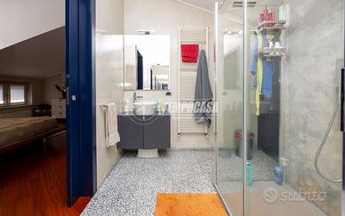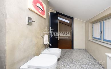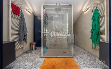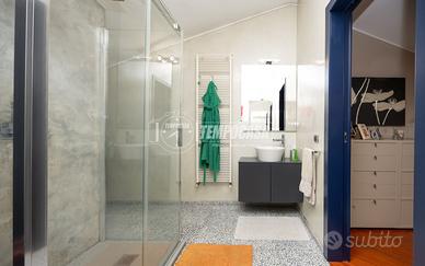 * Doppio bagno: uno con vasca, uno con doccia walk-in, in resina e pietra, effetto moderno e ricercato