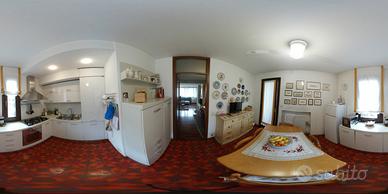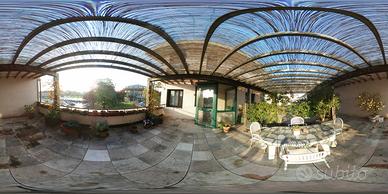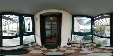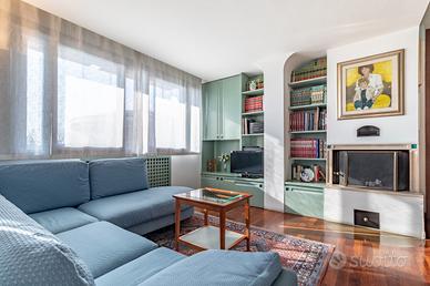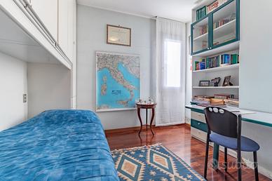 L'ampio soggiorno, caratterizzato da un accogliente caminetto e luminose vetrate, si apre su un terrazzo coperto di 60 mq, perfetto per momenti di relax e convivialità. La cucina separata, funzionale e ben illuminata, conduce a un ulteriore terrazzo. La zona notte, ben distribuita, comprende tre camere da letto e due bagni, offrendo spazi confortevoli per tutta la famiglia.