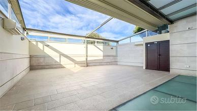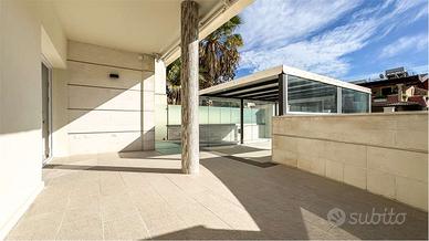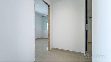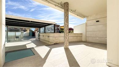 Limmobile, di recente costruzione, offre un accesso esclusivo tramite cancello carrabile, che conduce ad uno spazioso cortile frontale arricchito da un grande patio. Dal patio, tramite grande vetrata scorrevole, veniamo accolti nellampia zona living, un ambiente raffinato e ben illuminato, servito da due eleganti bagni con doccia, ed uscita, tramite una seconda vetrata scorrevole, nel magnifico cortile retrostante con pergola retrattile, ideale per momenti di relax o pranzi con amici e famiglia.