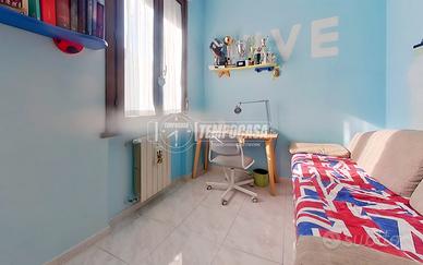 Accanto alla zona giorno è presente una lavanderia, un plus che garantisce ordine e praticità nella gestione della casa. La zona notte comprende due camere da letto, entrambe ben dimensionate, perfette per una famiglia o per chi ha bisogno di uno spazio da dedicare allo studio o a un ospite. Un bagno ben organizzato completa la distribuzione interna.