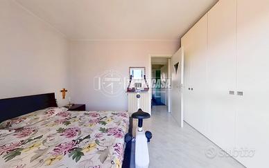 L'ingresso si apre su una luminosa zona giorno con cucina a vista e soggiorno, un ambiente moderno e pratico, perfetto per la vita quotidiana e per accogliere ospiti. Dal soggiorno si accede a un comodo terrazzino, ideale per trascorrere momenti di relax all'aperto, allestire un piccolo tavolino per la colazione o semplicemente godere di uno spazio esterno privato. Gli ambienti sono valorizzati da ampie finestre dotate di infissi in legno con doppio vetro, che assicurano luminosità e un ottimo isolamento termico e acustico.